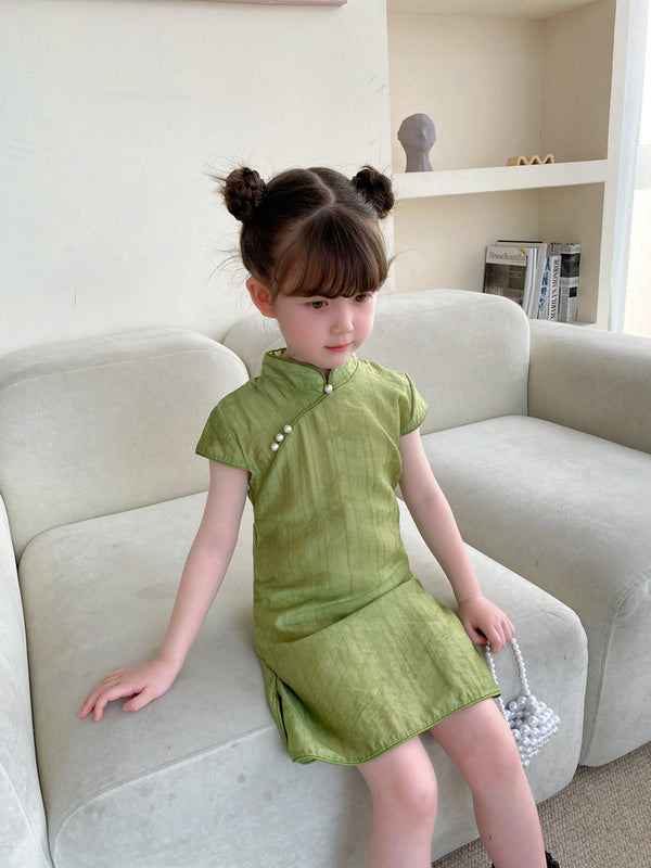 Green Sleeveless Girl's Qipao Dress
