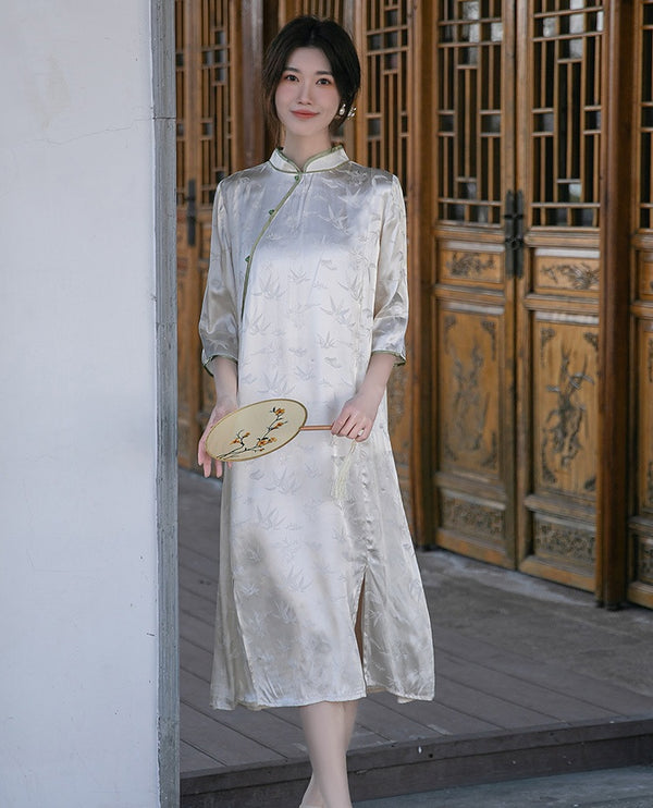 Ivory Loose Qipao Cheongsam Dress – New Chinese Zen-Inspired Design