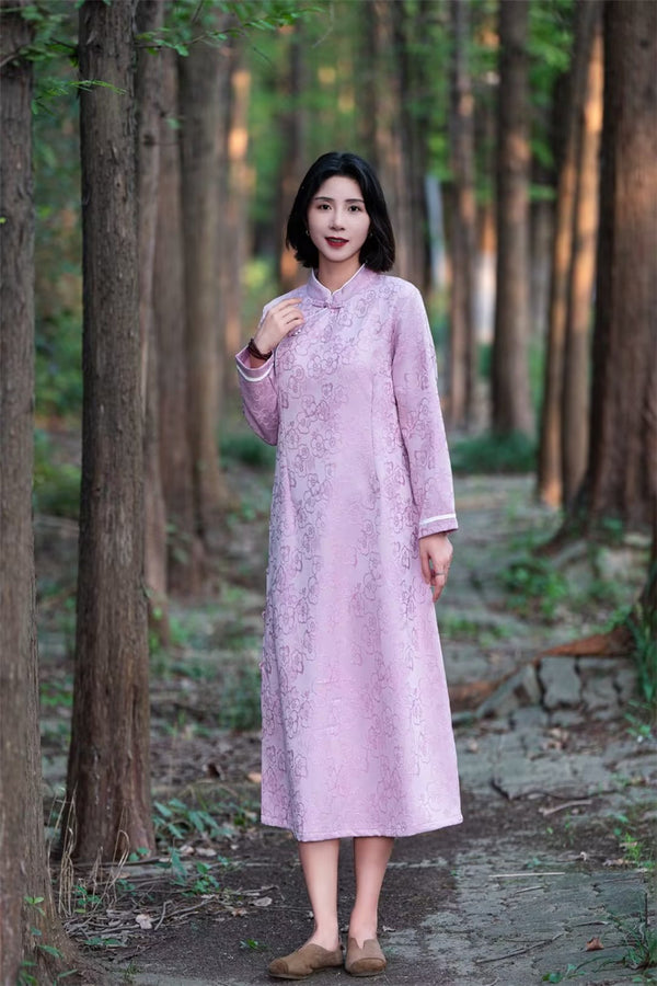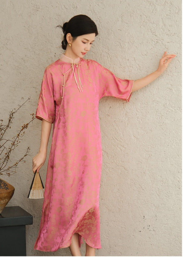 Rose Pink Jacquard Loose Cheongsam Qipao Dress