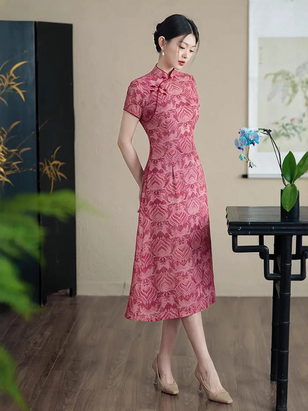 Rosa Qipao-Kleid aus Maulbeerseide und Jacquard