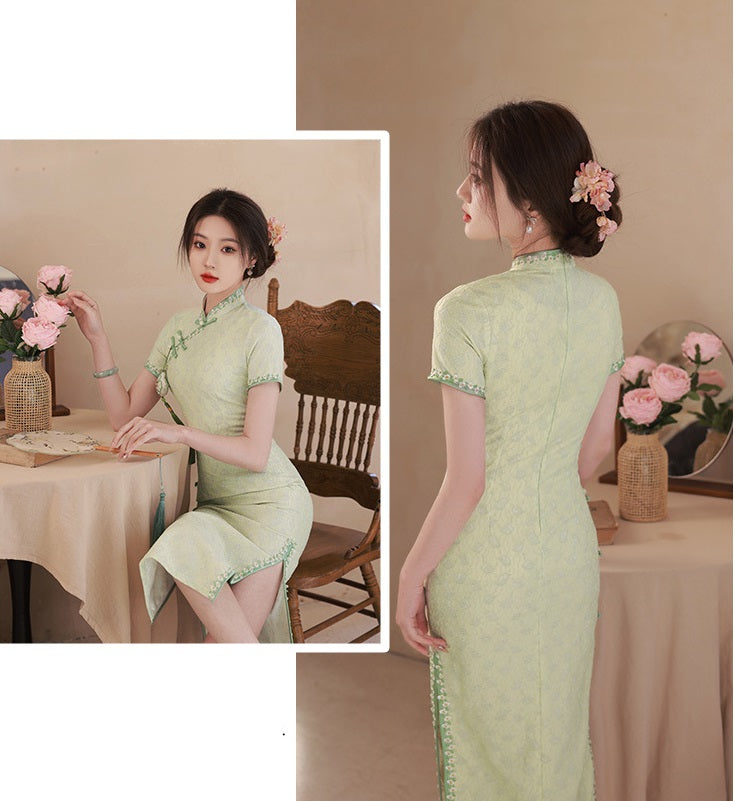 Grün-weißes Cheongsam Qipao aus Spitze | Daisy