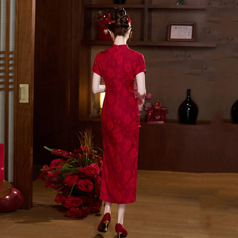 Rotes Qipao Cheongsam Kleid mit Blumenmuster | Crimson Grace