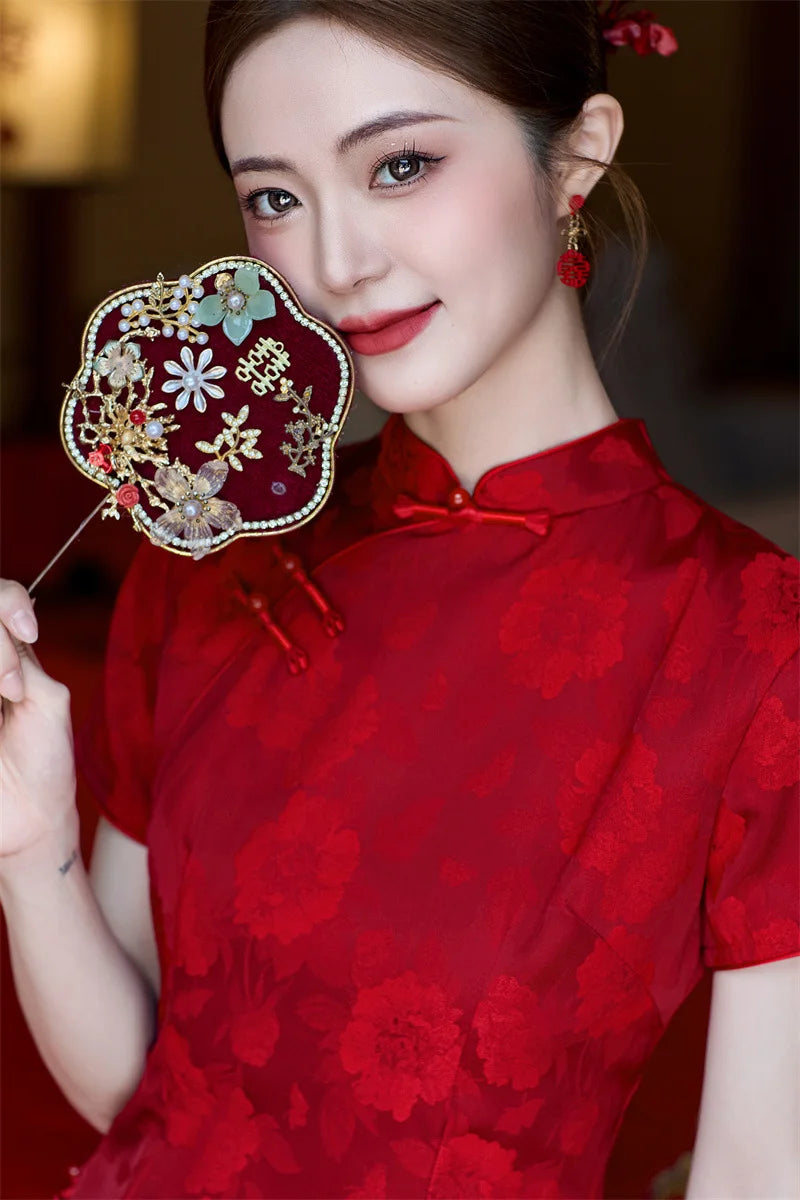 Dieses Kleid eignet sich perfekt als Hochzeits-Qipao, als Kleid für die Teezeremonie oder als festliches Bankett-Outfit und strahlt sowohl kulturelles Erbe als auch zeitgenössische Anmut aus.