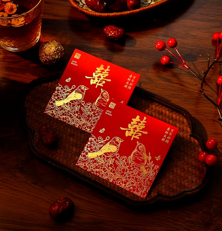 Red Golden Double Happiness Wedding Red Envelopes | Birds (10pcs)